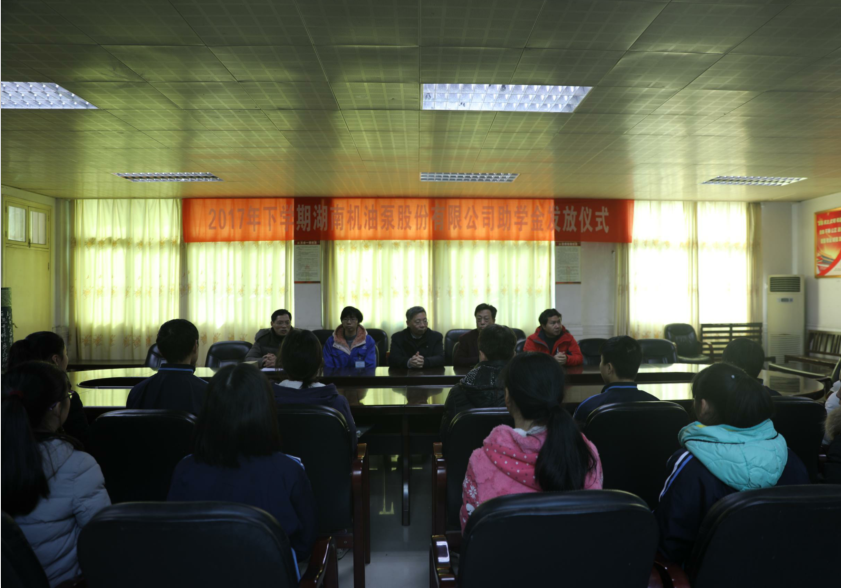 2018122日上午,2017年下半年的衡東一中助學金發放儀式在衡東一中如期舉行。此次參加發放儀式的有衡東縣教育基金會副秘書長曾笑光,衡東一中校長李春暉,衡東一中副校長左國慶,衡東一中總務主任秦強輝,我公司縣政府特派員陽用林書記、綜合管理部經理陳馥等參加此次發放儀式。此次我公司共捐贈四萬元,衡東一中共20名優秀學子得到了助學金。